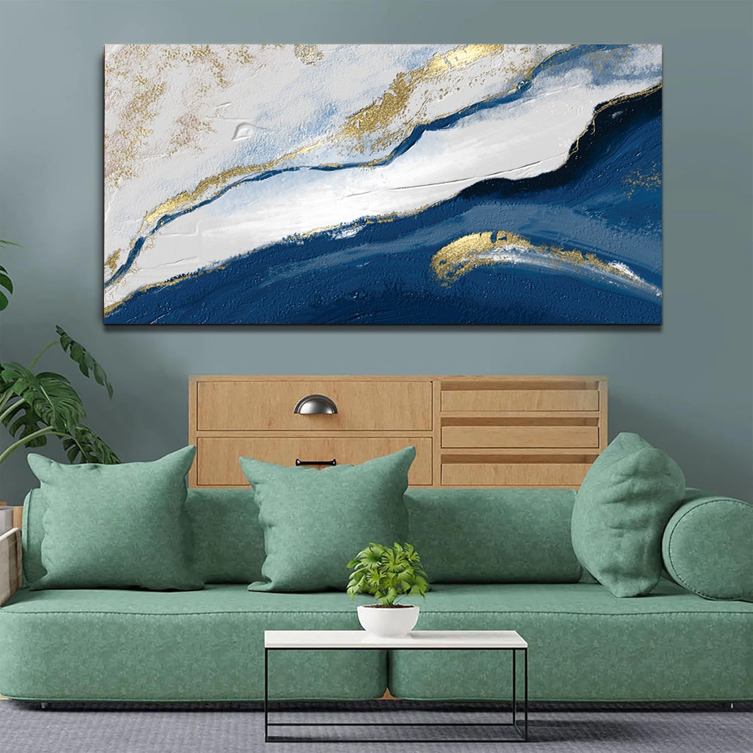 Abstract Blue and Gold Canvas Wall Painting
