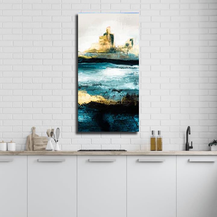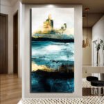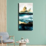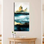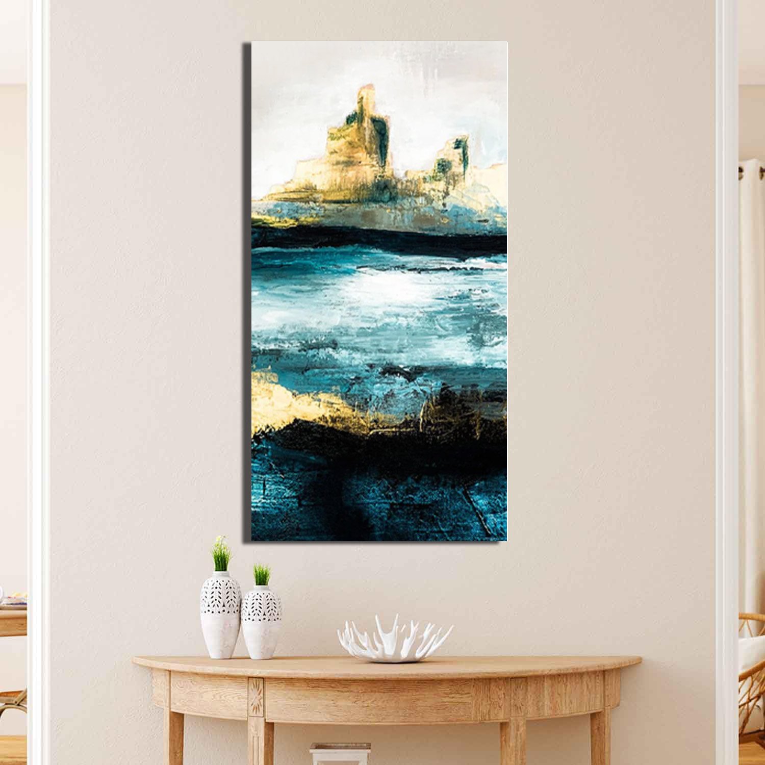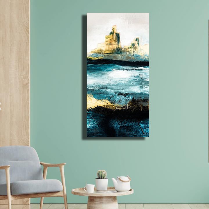 Abstract Texture Landscape Golden Mountain Lake Canvas Wall Painting.