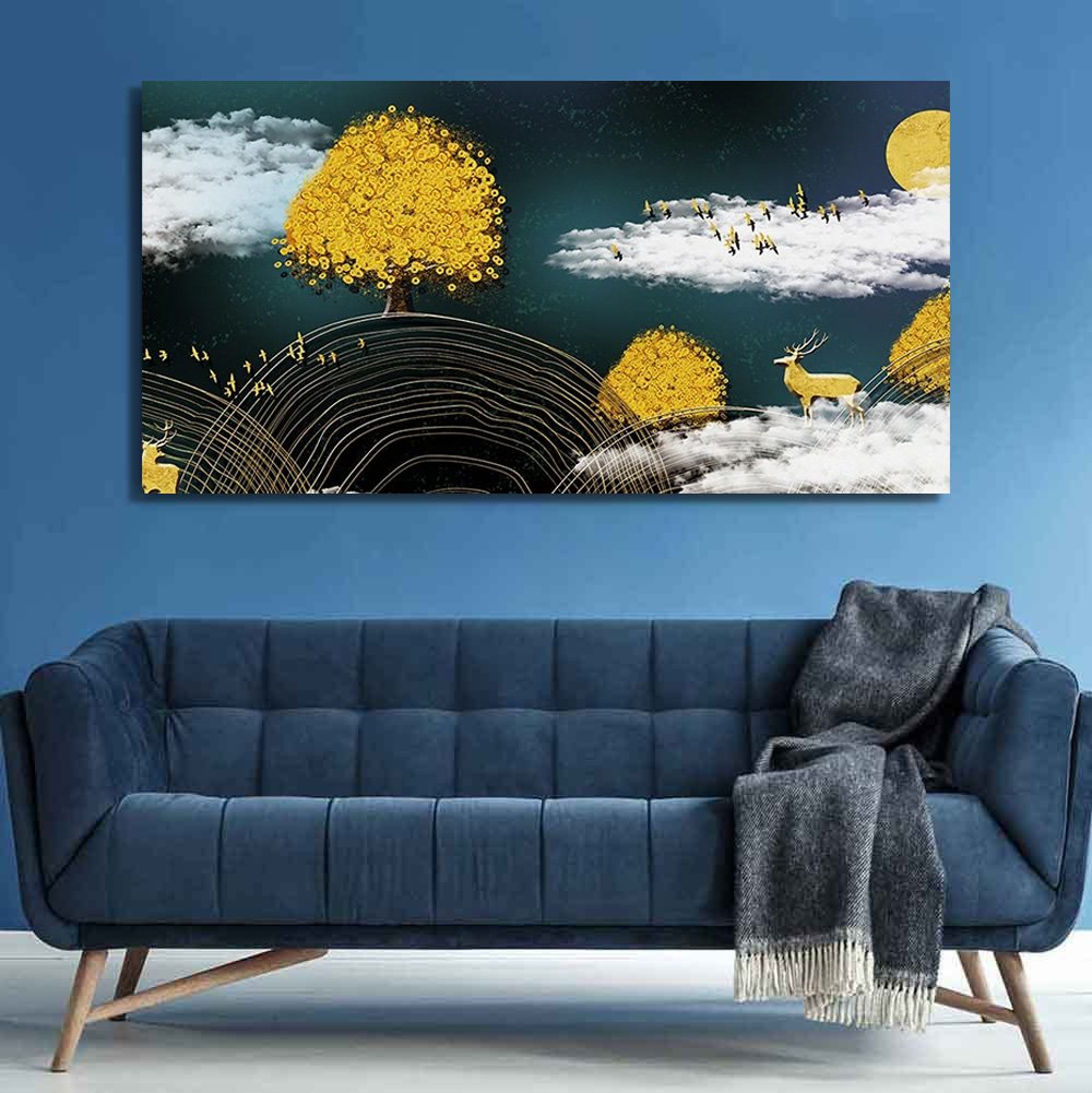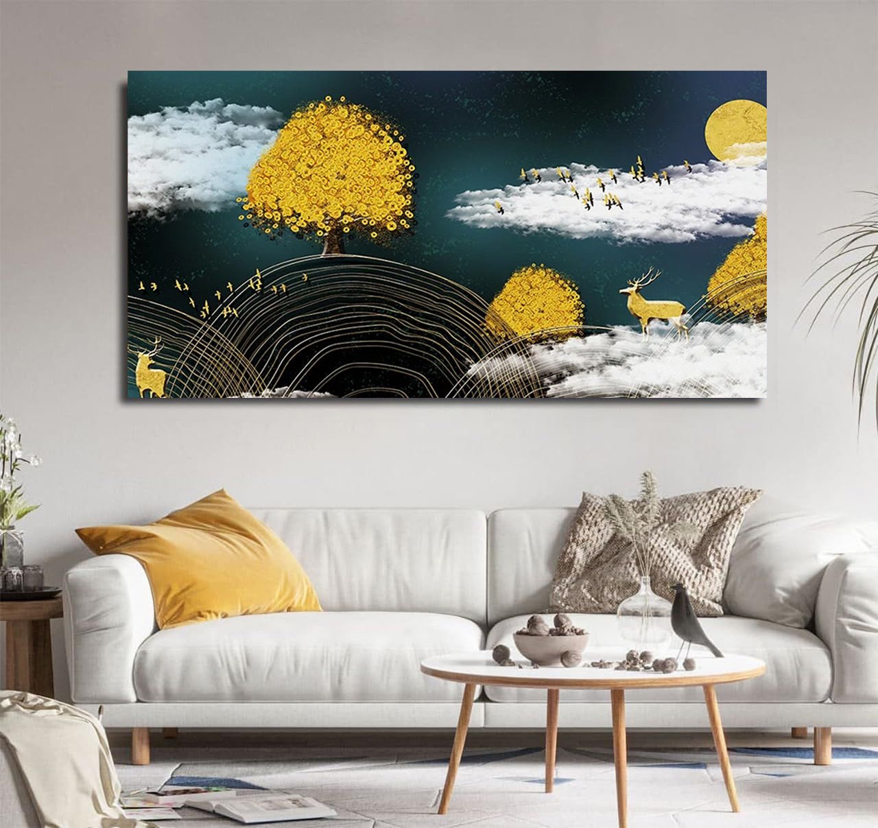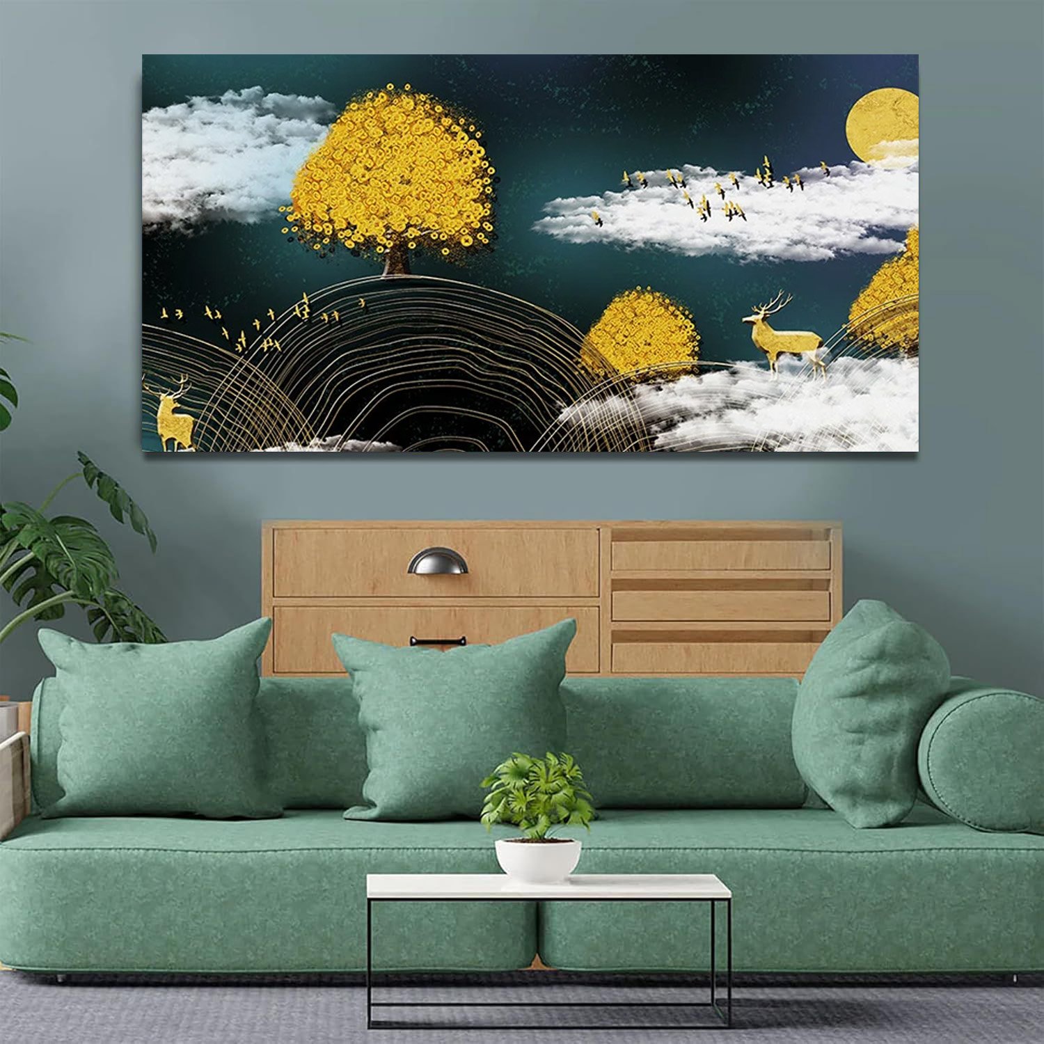Beautiful a Golden Tree and Deer Motif Canvas Wall Painting