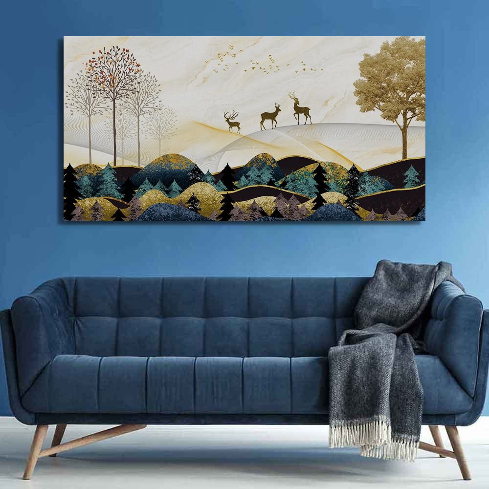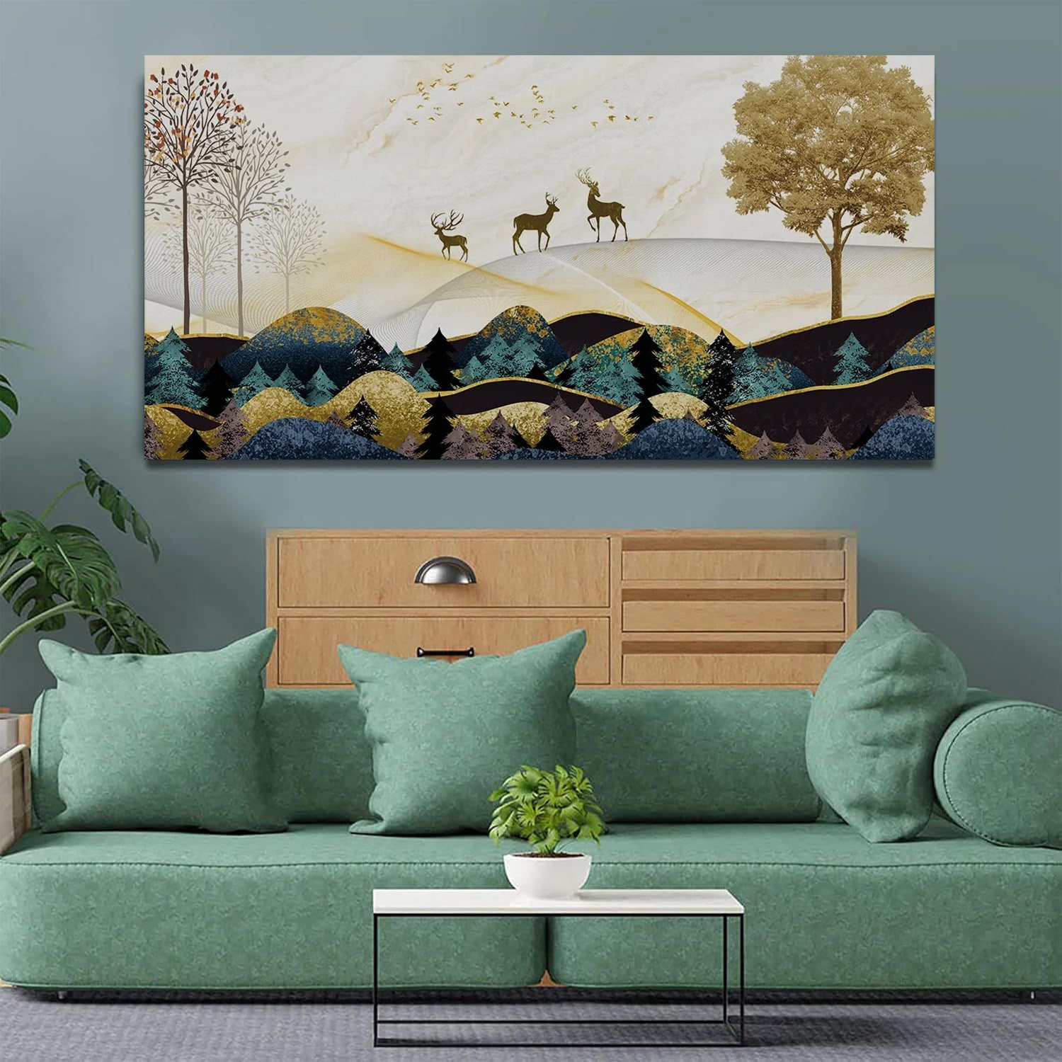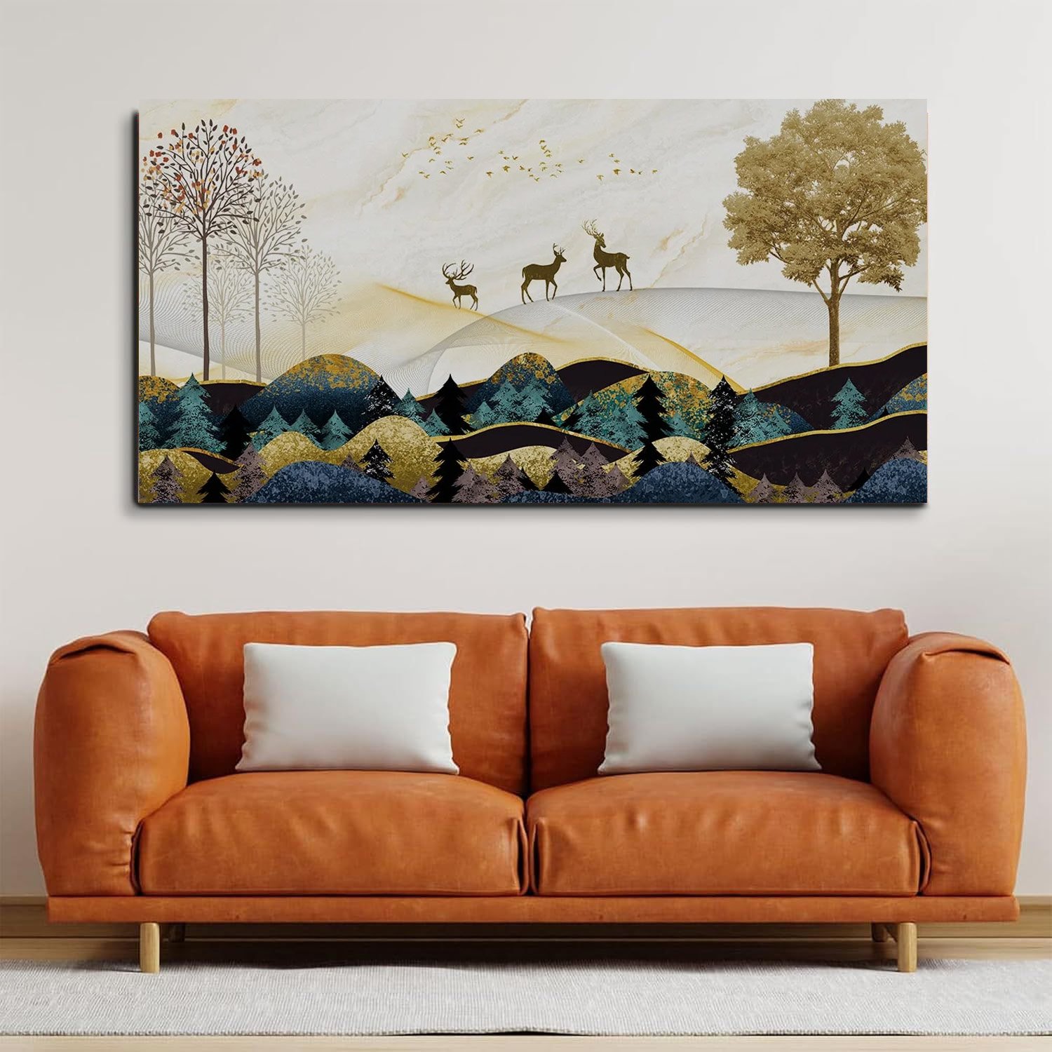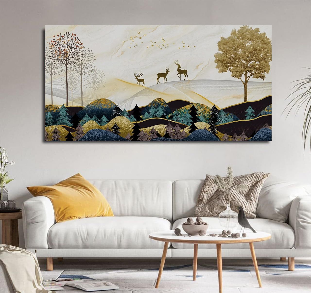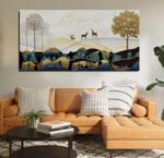 Be the first to review “Beautiful Abstract Golden Landscape Trees with Golden Deer Canvas Wall Painting”