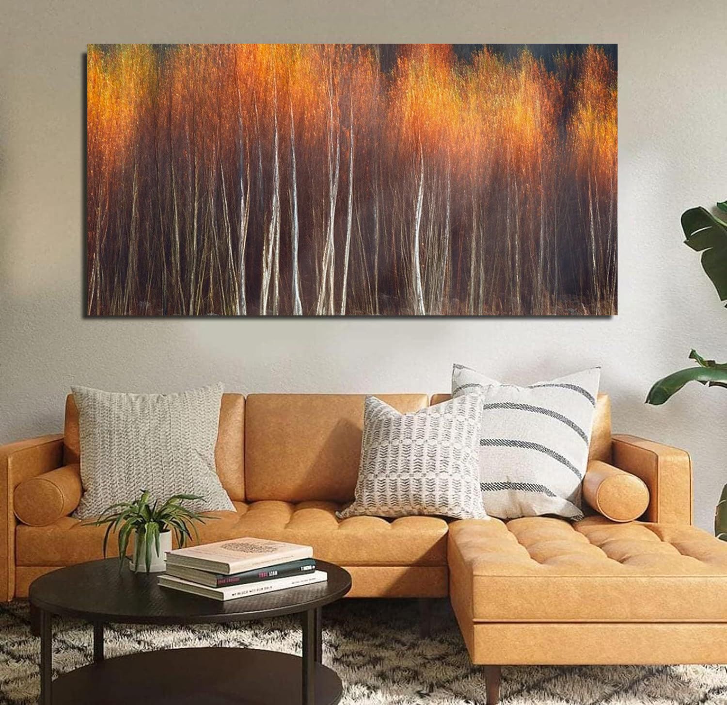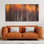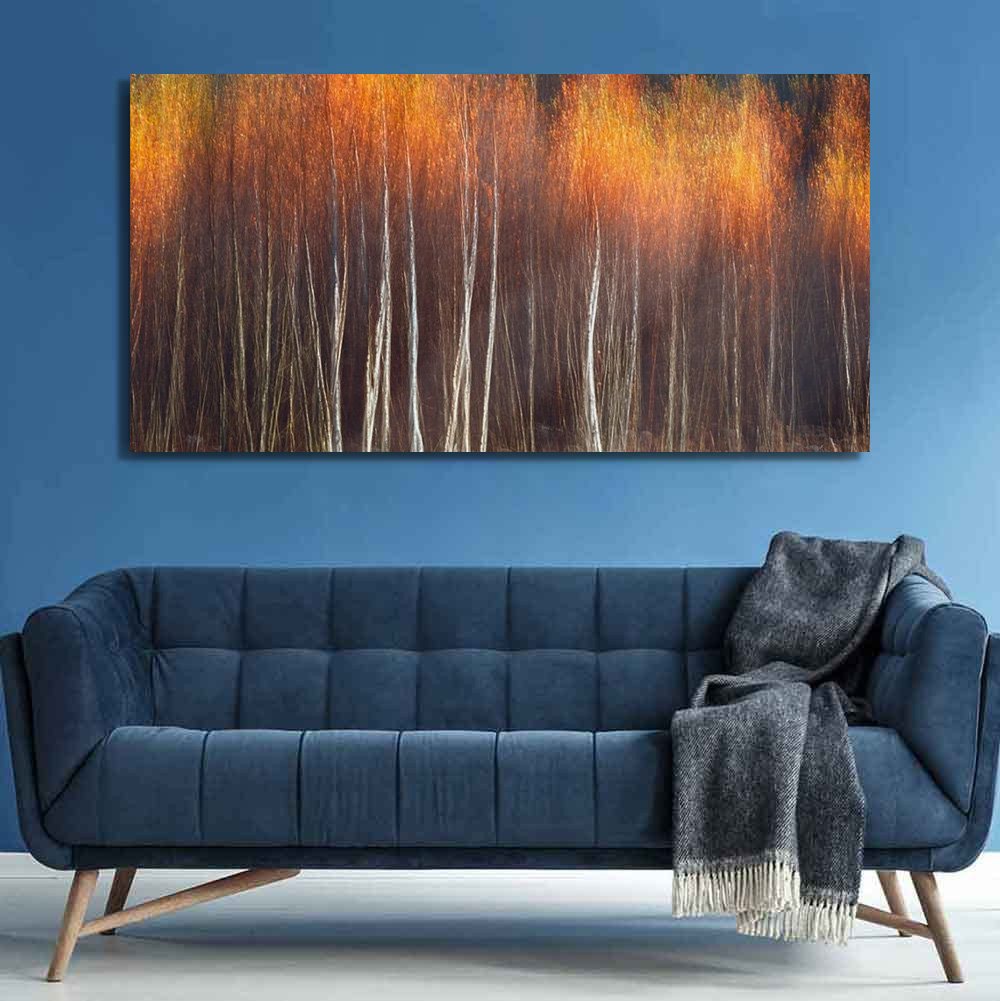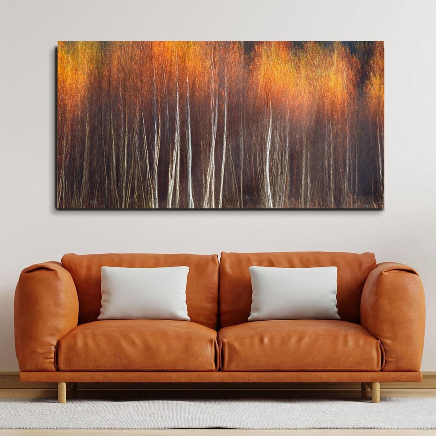 Beautiful Autumnal Birch or Aspen Forest Scene Landscape Canvas Wall Painting