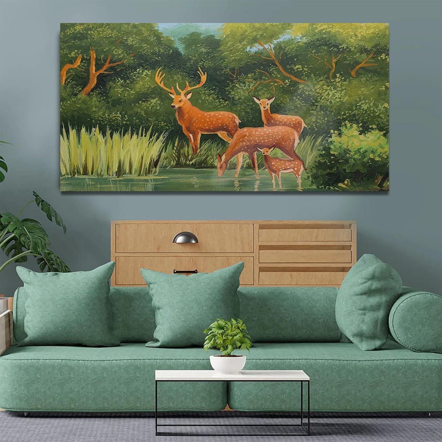 • Beautiful Deer Vastu Canvas Painting Landscape Canvas Wall Painting