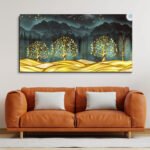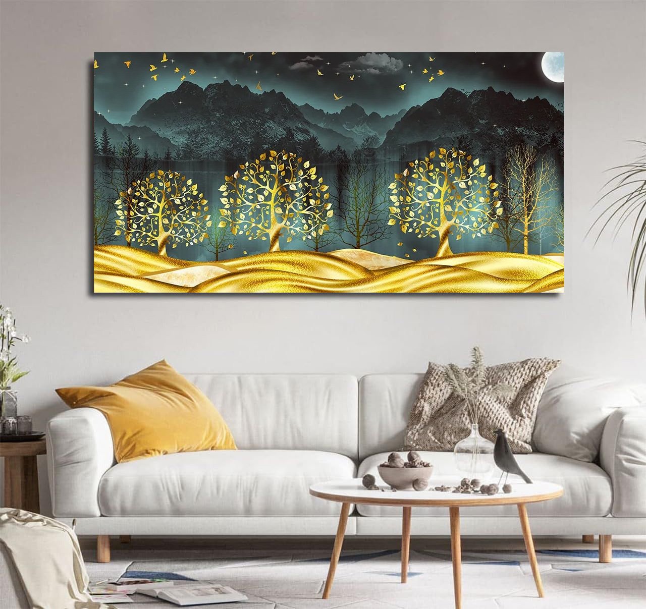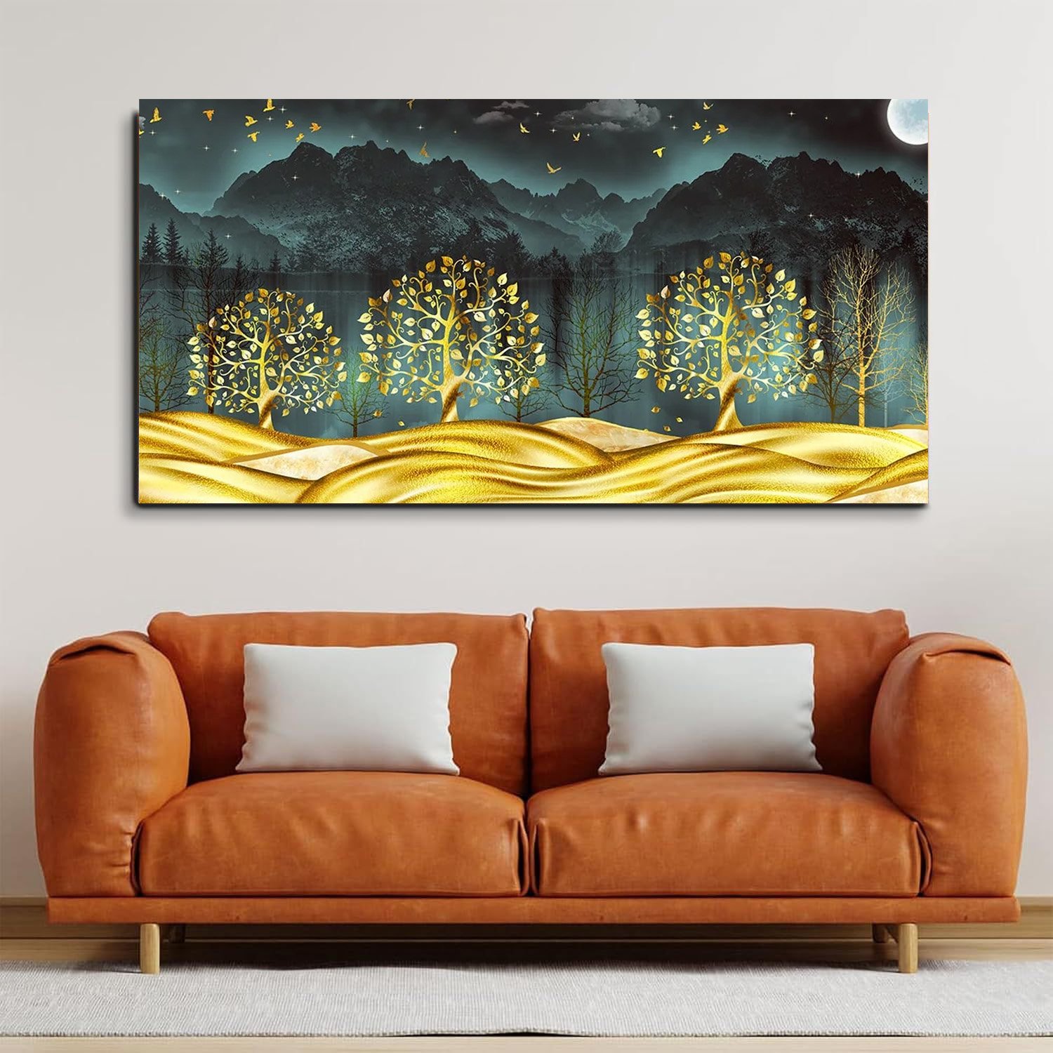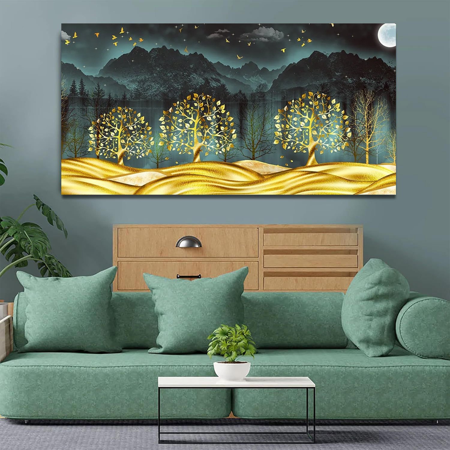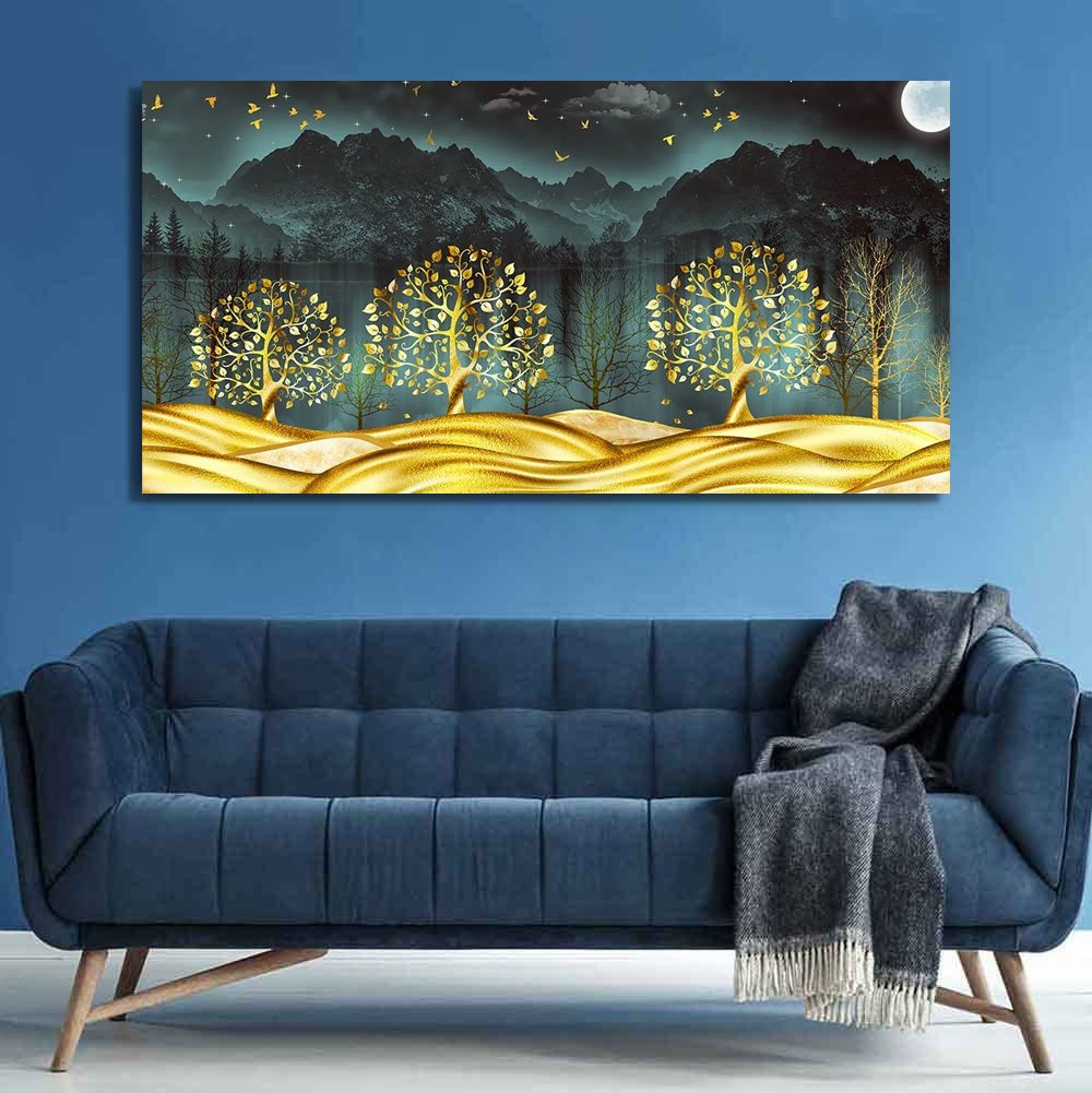 Beautiful Golden Dreamscape Mesmerizing Nightscape Canvas Wall Painting