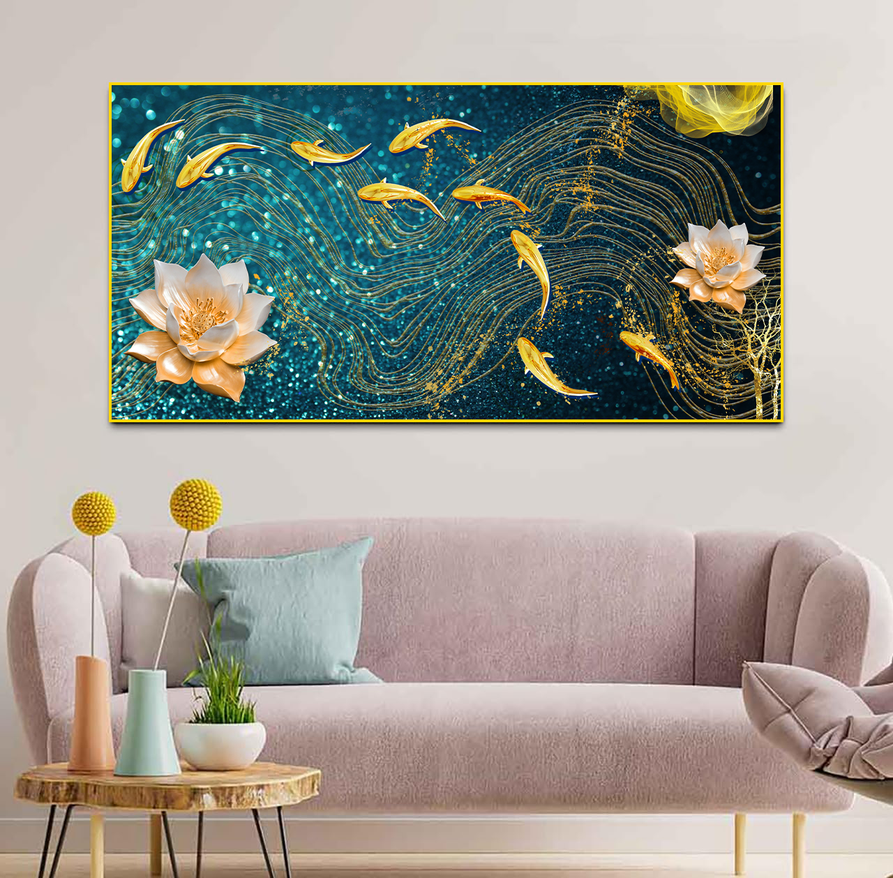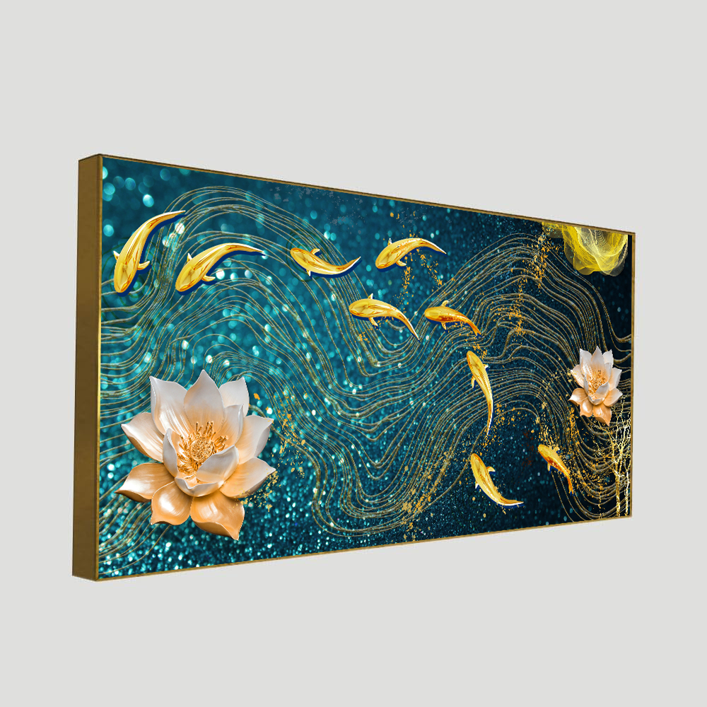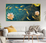Be the first to review “Beautiful golden lotus flowers and koi fish Floating Frame Canvas”