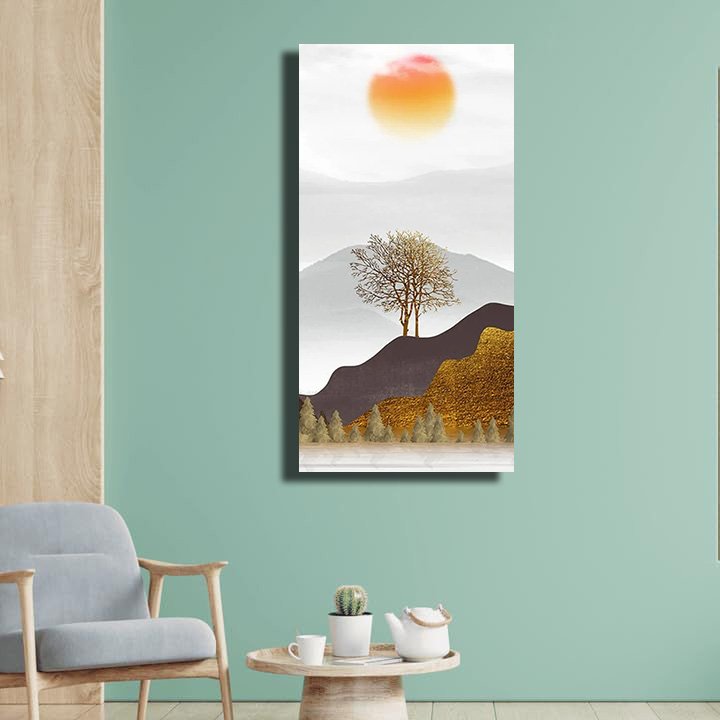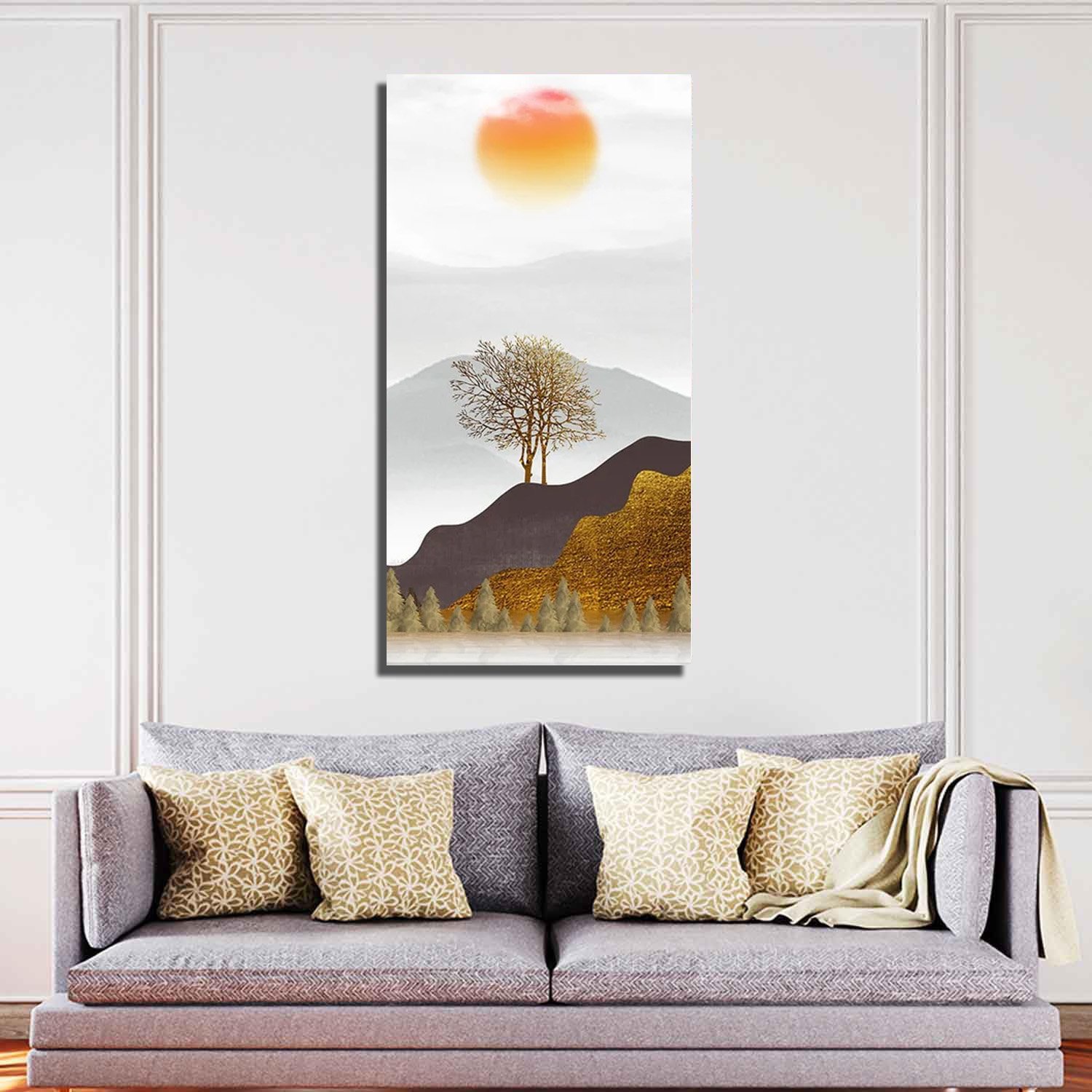 • Golden Mountain with Beautiful Sunrise Canvas Wall Painting.
