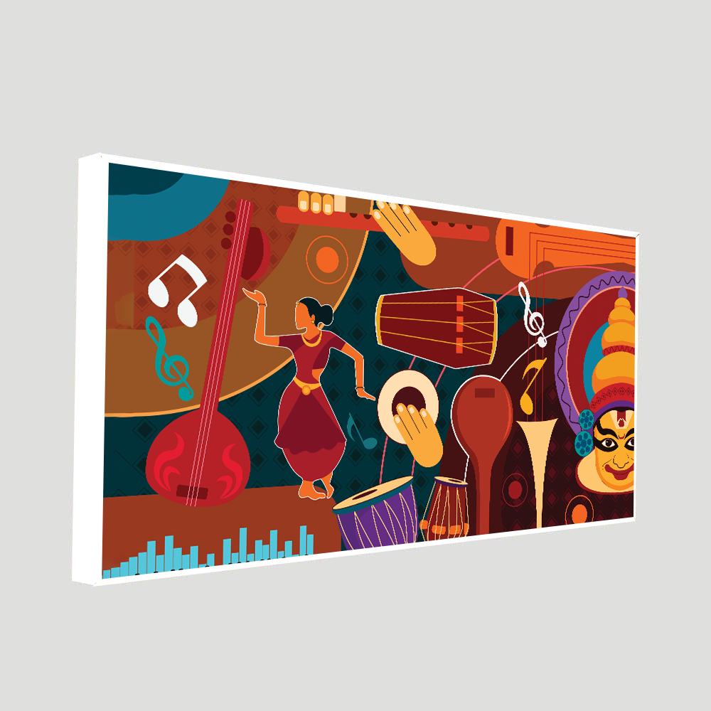 Beautiful Indian classical music and dance elements wall art Floating Frame Canvas