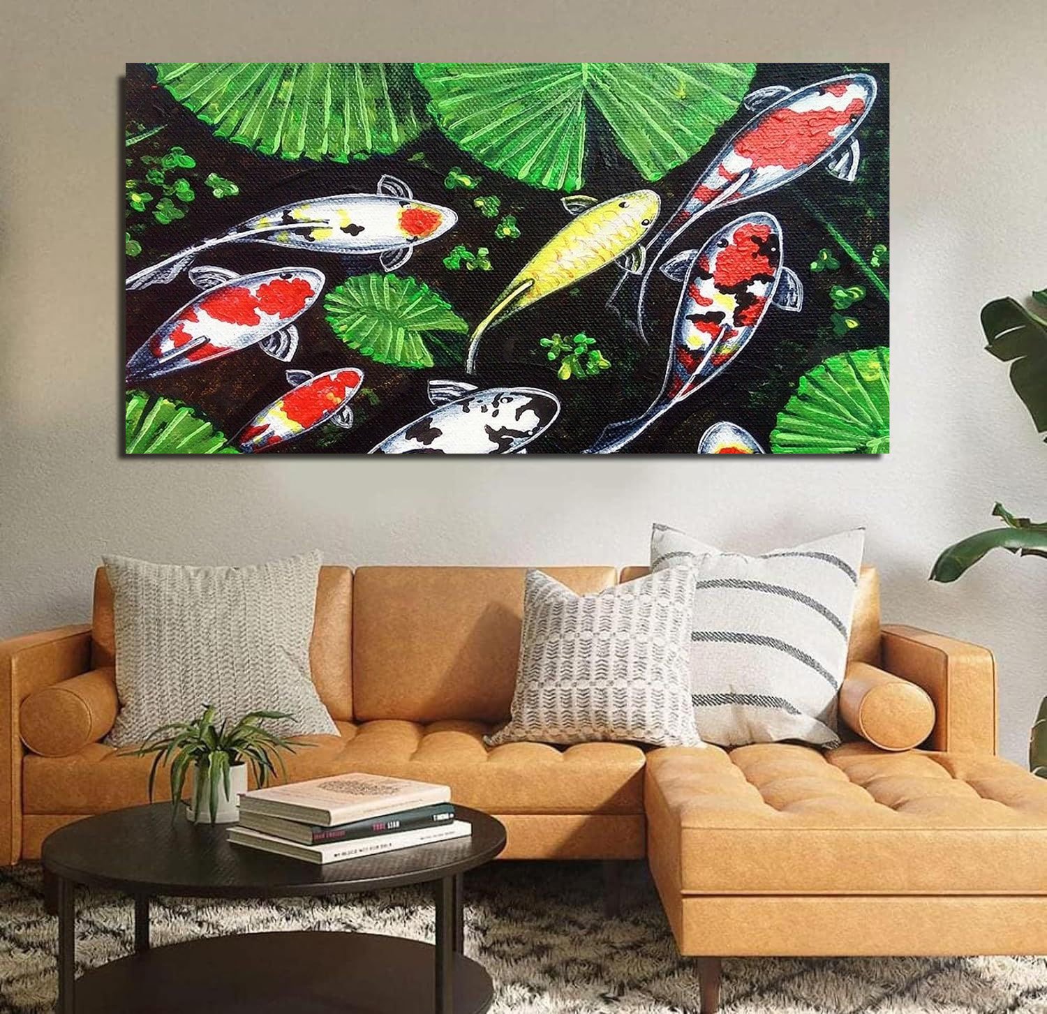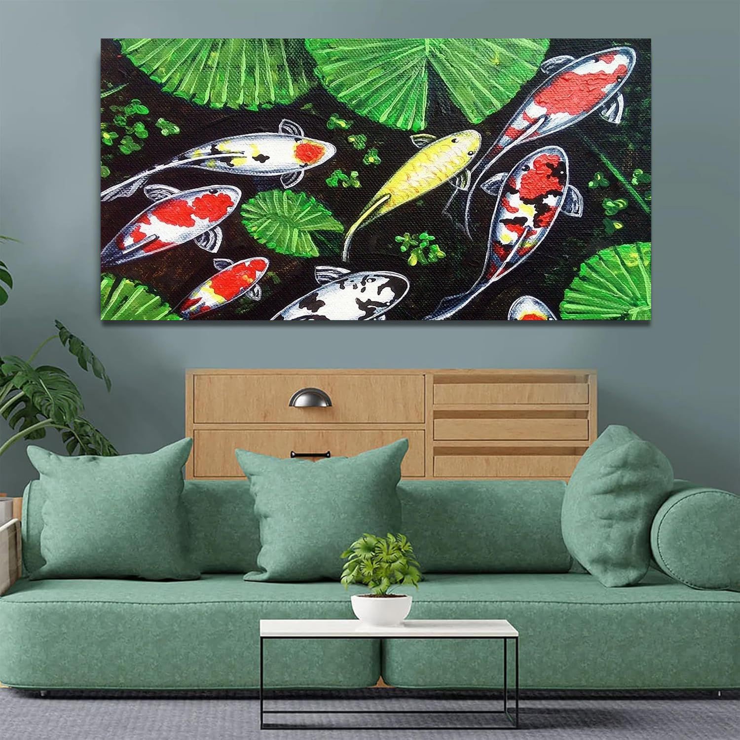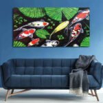 Beautiful Koi Fish Landscape Canvas Wall Painting