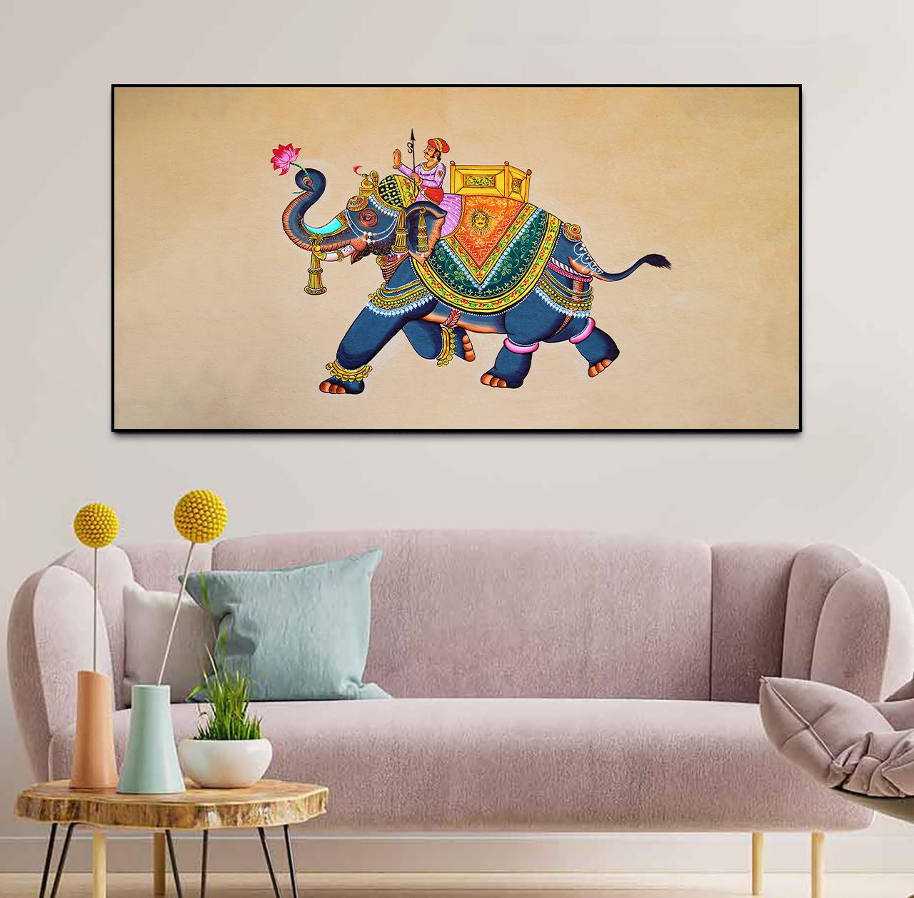 Beautiful Rajasthani elephant wall art Floating Frame Canvas