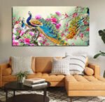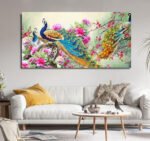 Beautiful Vibrant Peacock And Flower Nature Landscape Canvas Wall Painting