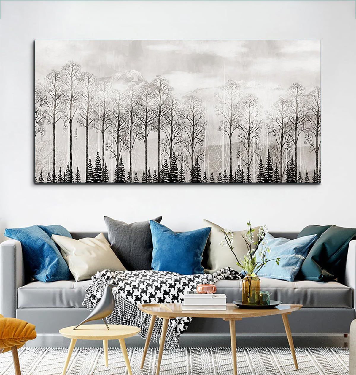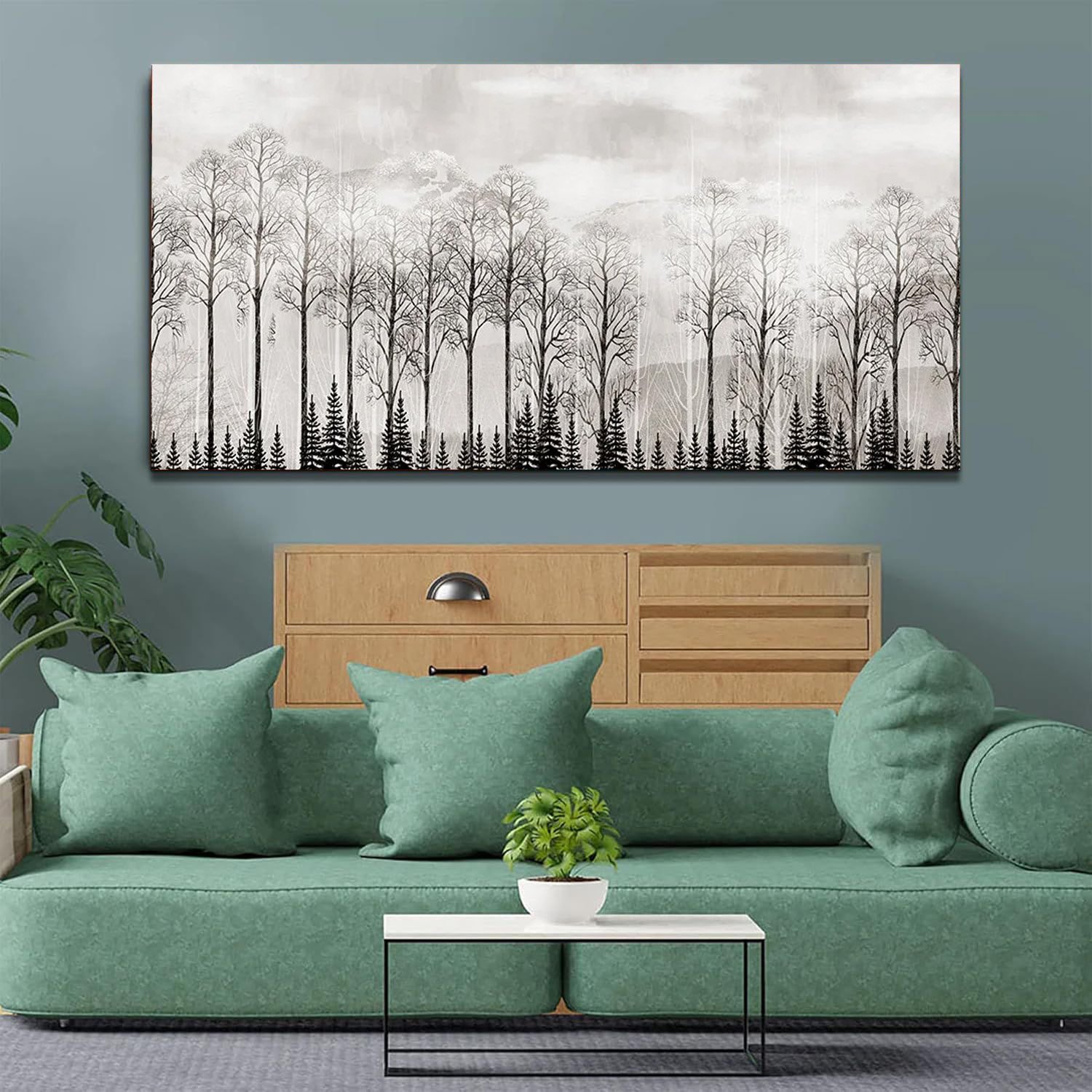 Misty mountain and forest landscape Canvas Wall Painting.