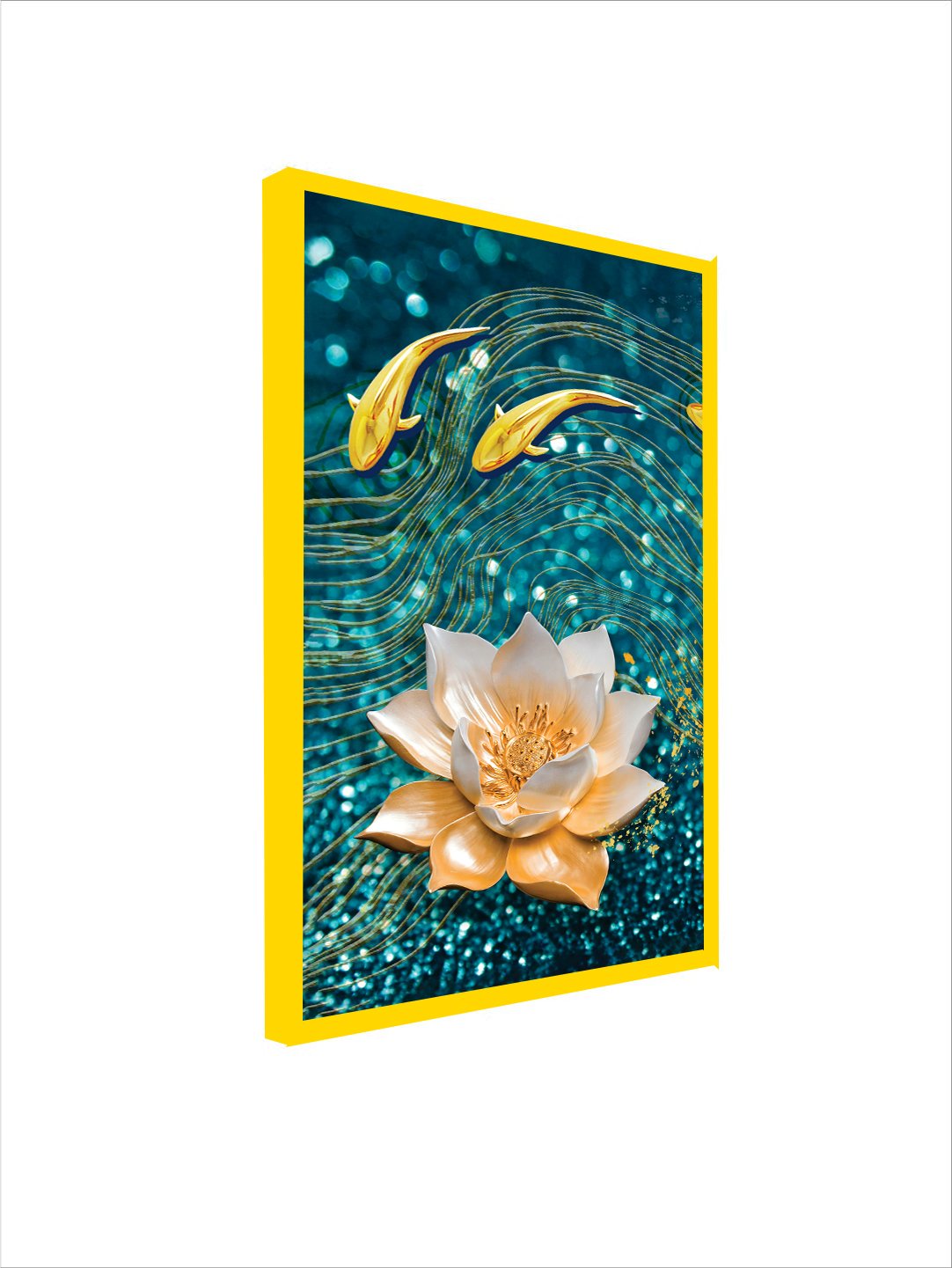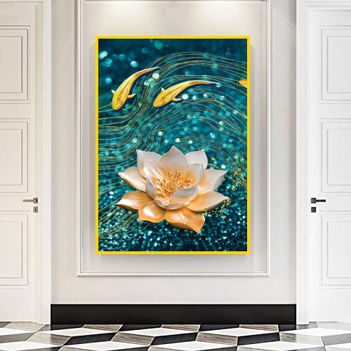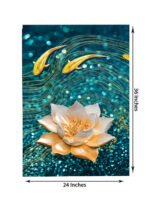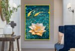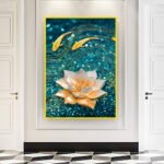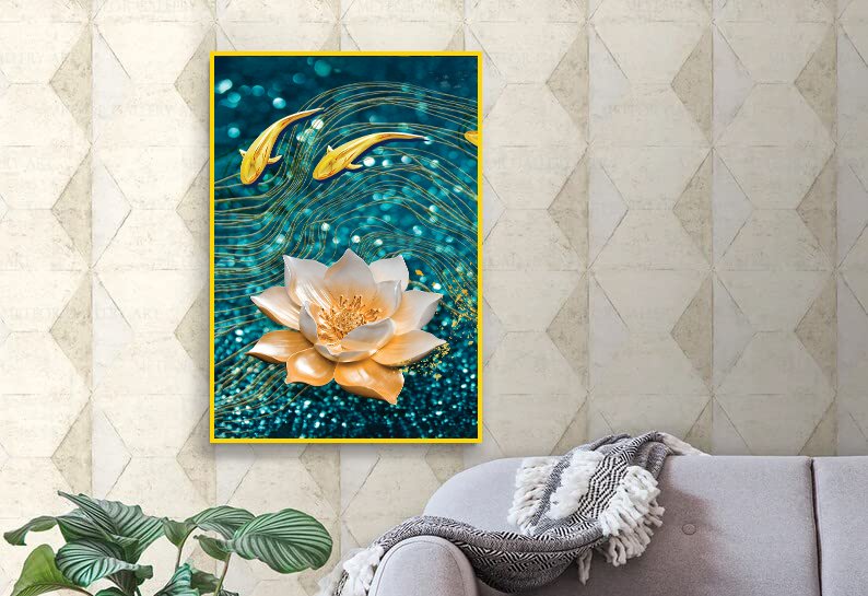 Modern Golden Lotus with Koi Fish Abstract Floating Frame Canvas Wall Painting