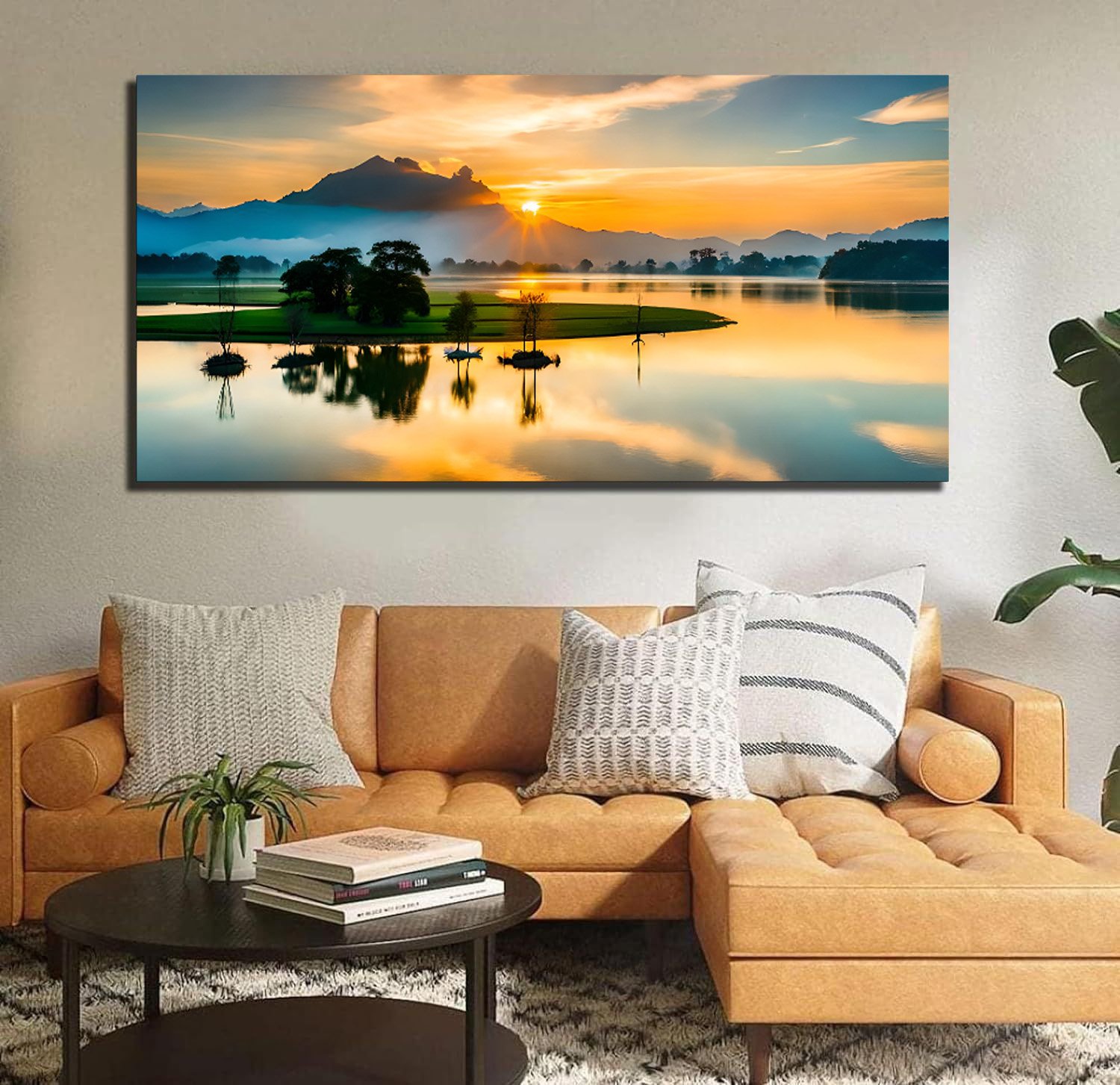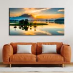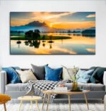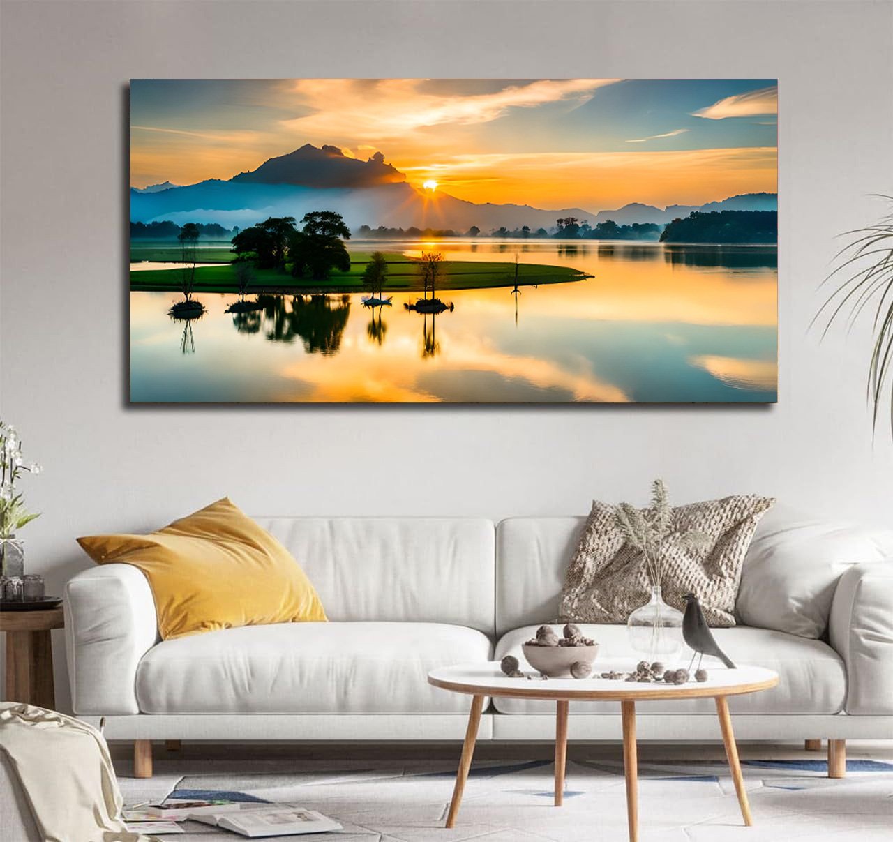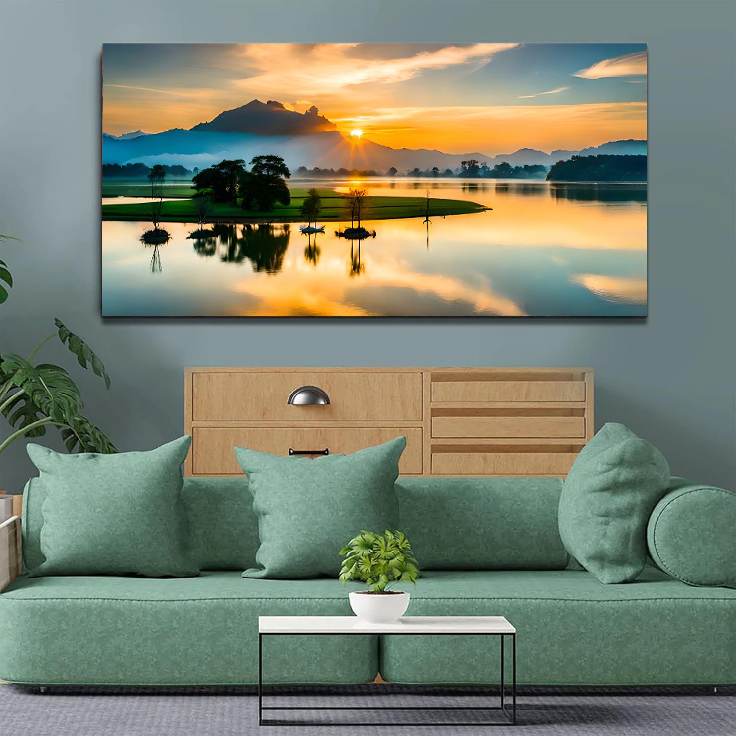 Nature Sunrise Over Mountains with Lake Canvas Wall Painting