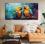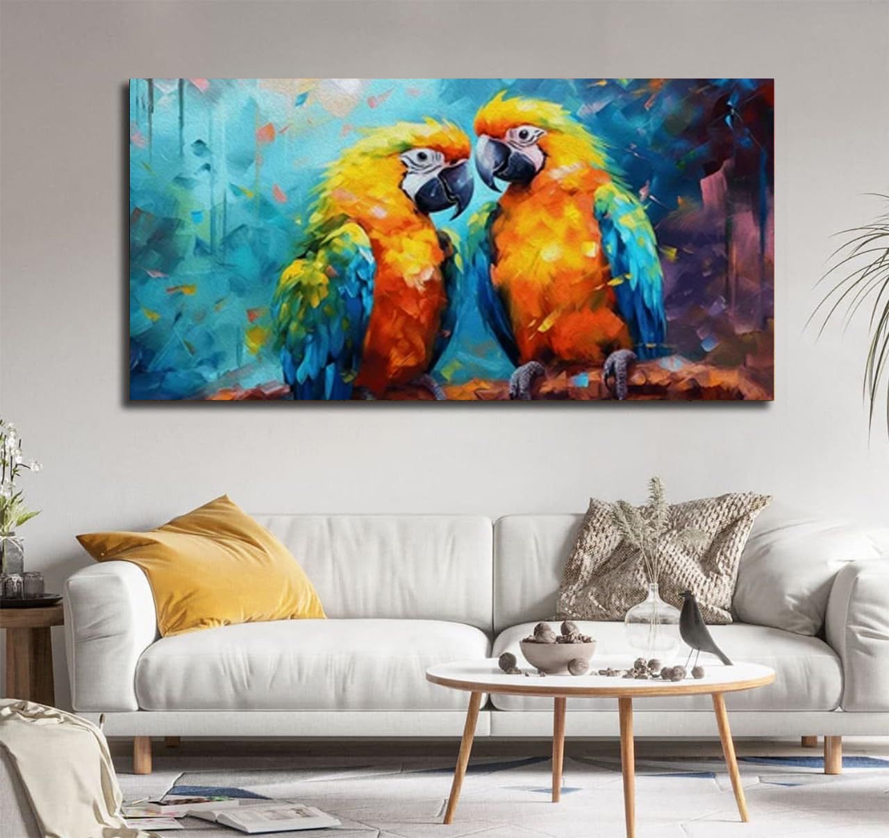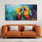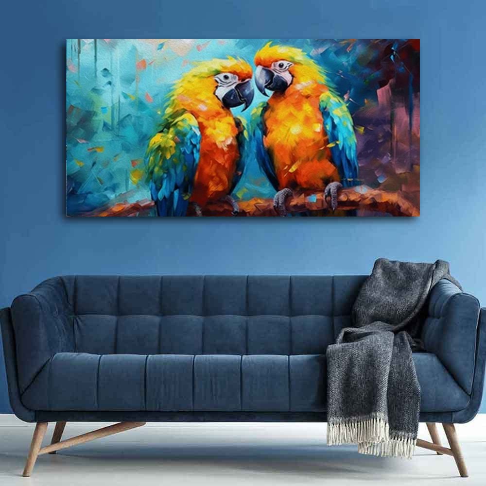 two colorful parrots perched on a branch Canvas Wall Painting.